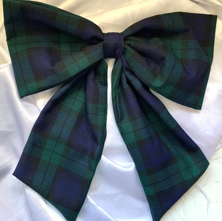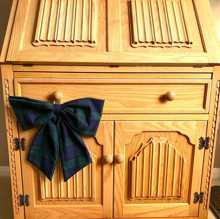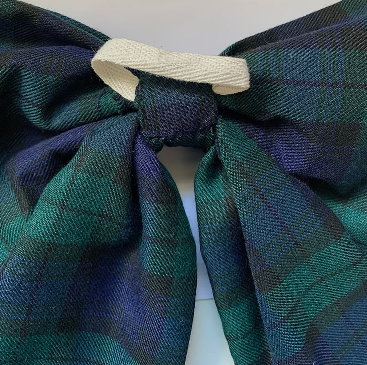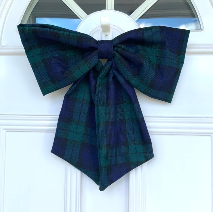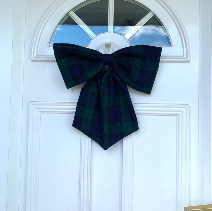 This beautiful Christmas door bow is hand cut from a piece of navy blue tartan fabric.