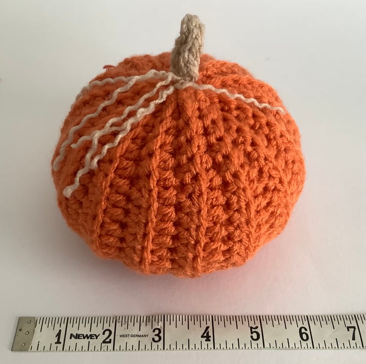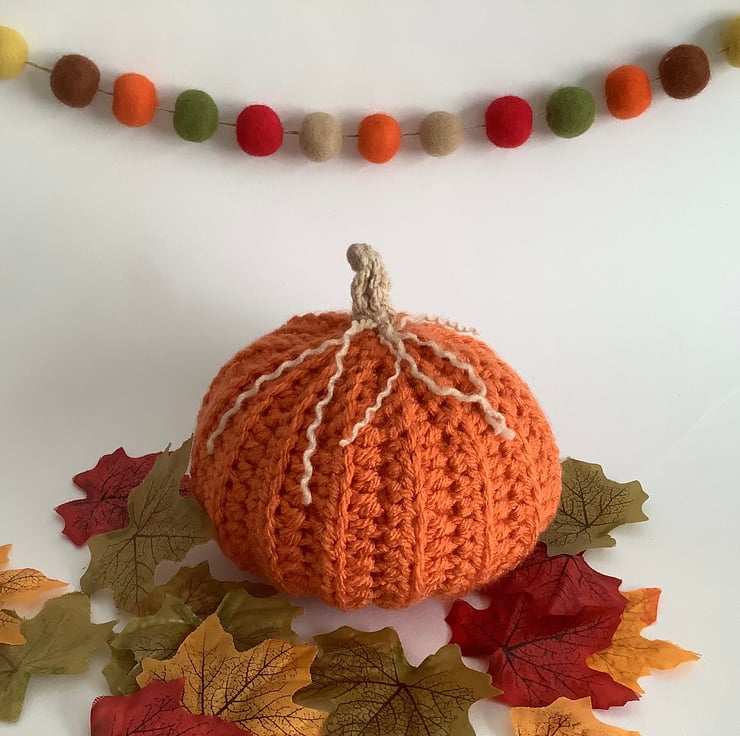 I have designed and crocheted this individual Pumpkin to add a fun touch to your home decor this Autumn ! Lovely for a themed display for all of Autumn ( as I do ! ) or just Halloween.