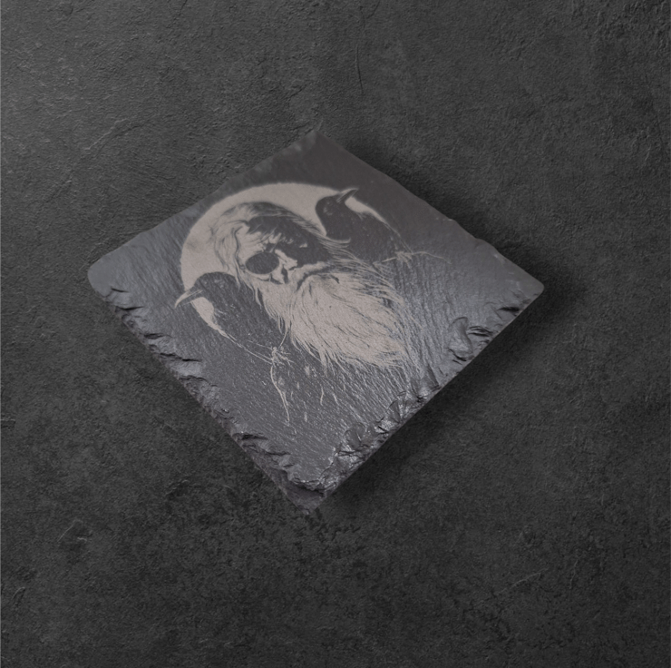I’ve always been inspired by the rich stories of Norse mythology and the symbolism of Odin, the wise Allfather, who is often depicted with his ravens Huginn and Muninn. These birds represent thought and memory, constantly flying through the world to bring knowledge back to him. I wanted to capture that powerful imagery on natural slate - a material that feels raw and timeless - so each coaster becomes more than just a practical item; it’s a piece of mythology and storytelling you can bring into your home.