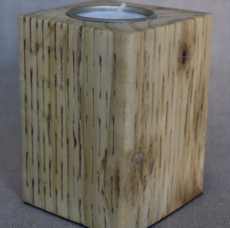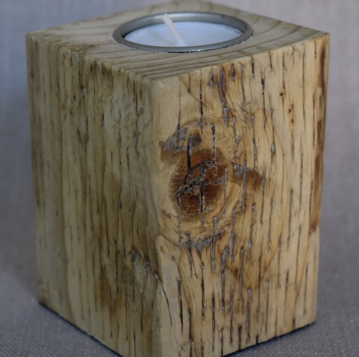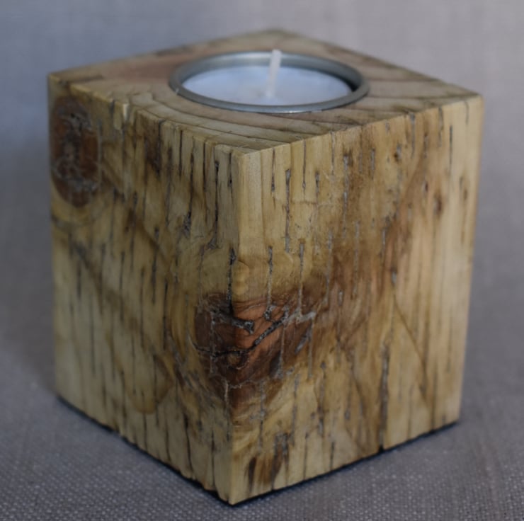 The inspiration for this piece comes from the warmth and character found in reclaimed wood. Using upcycled fence posts, I wanted to highlight the natural golden yellow tones of the timber, along with its subtle scars and textures that tell the story of its previous life. By creating two blocks of differing heights, the design introduces rhythm and visual interest, while the tealights add a gentle, inviting glow. This piece celebrates sustainability and the beauty of simple, functional design that brings warmth and personality to any space.