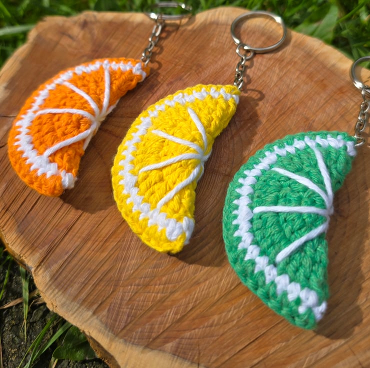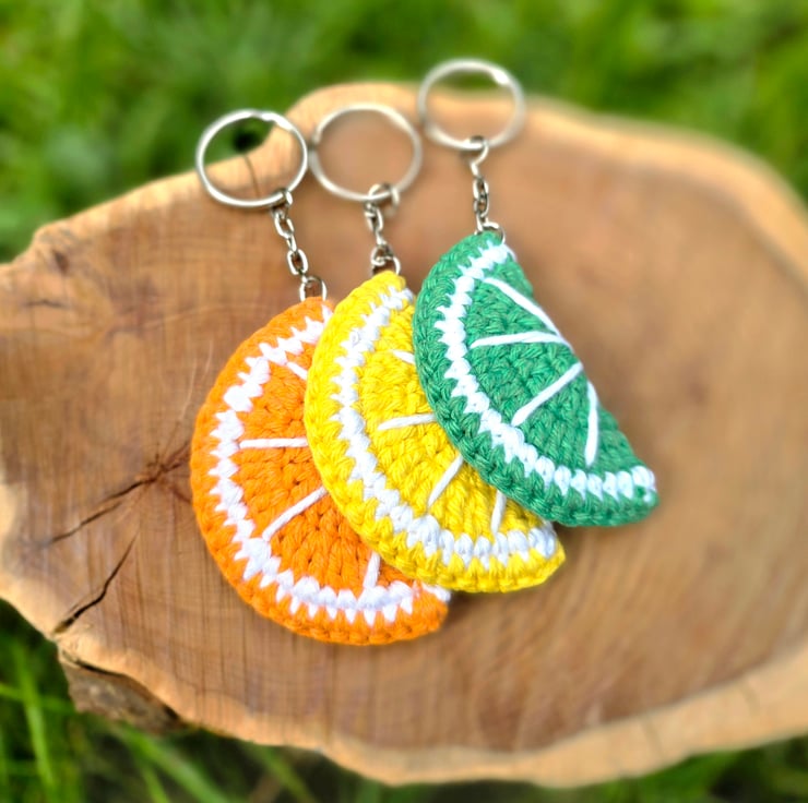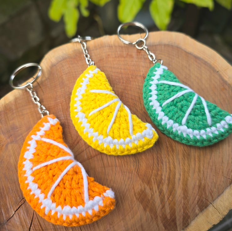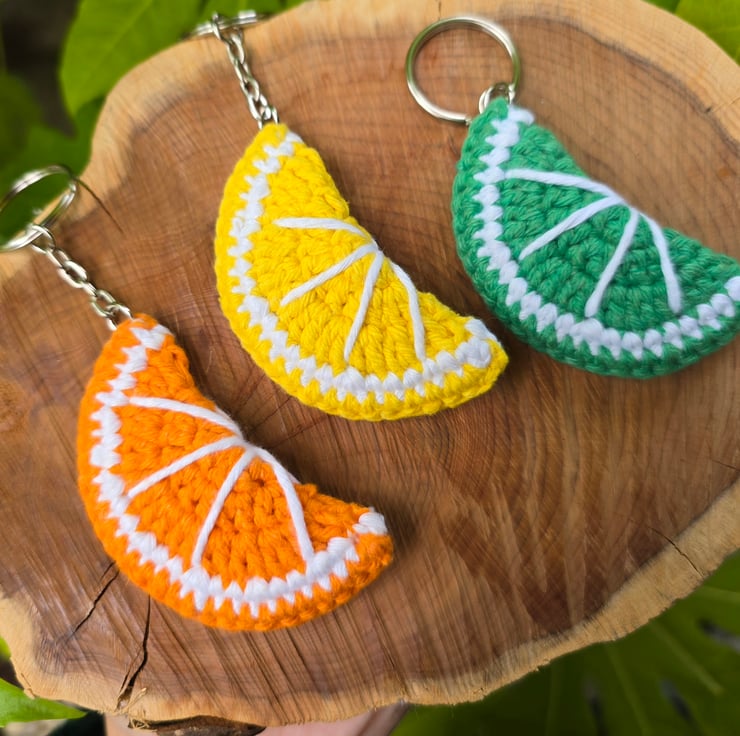 Add a splash of sunshine to your day with these adorable crochet fruit keychains! Handmade with love, each keyring features a juicy citrus slice, choose from lemon, orange, or lime. Perfect for adding a pop of colour to your keys, bags, or backpacks.