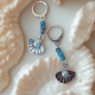 Beautiful light changing blue glass beads blended with the tiniest beads in navy blue and gold, lightweight and lovely. All beads are recycled. Hanging on pretty strands on nickel free 925 silver hooks.