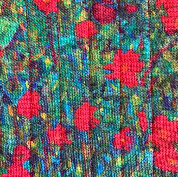 The sleeve is quilted with red colour stitching and is lined in plain red cotton.