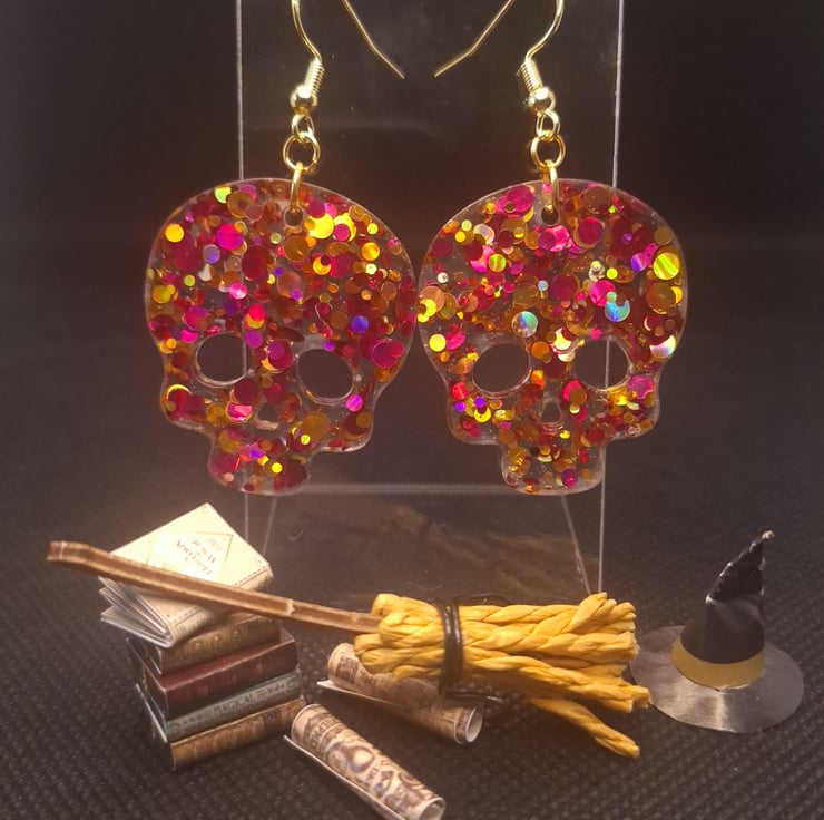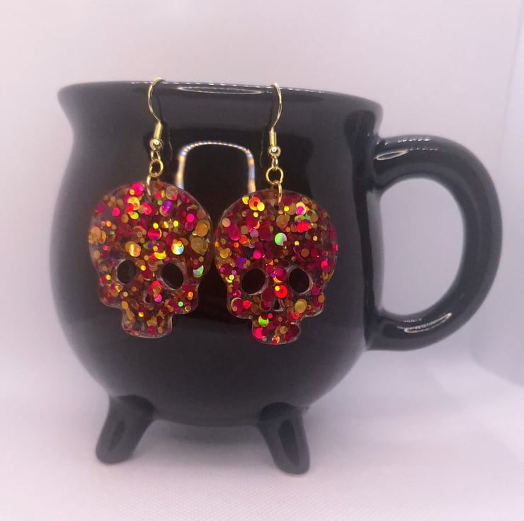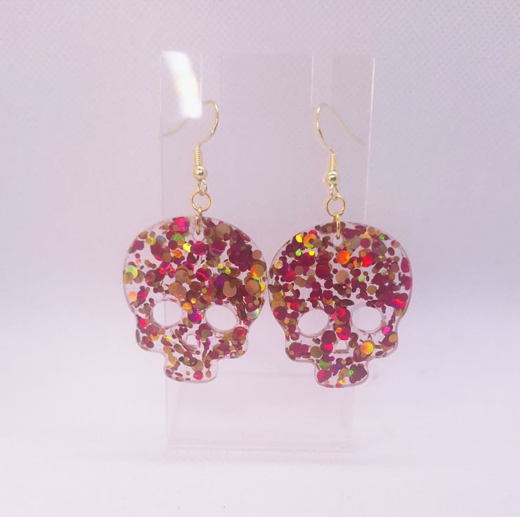 Clear and sparkly resin filled skull earrings, perfect for Halloween, or any time of the year if you're a fan of the Gothic persuasion!