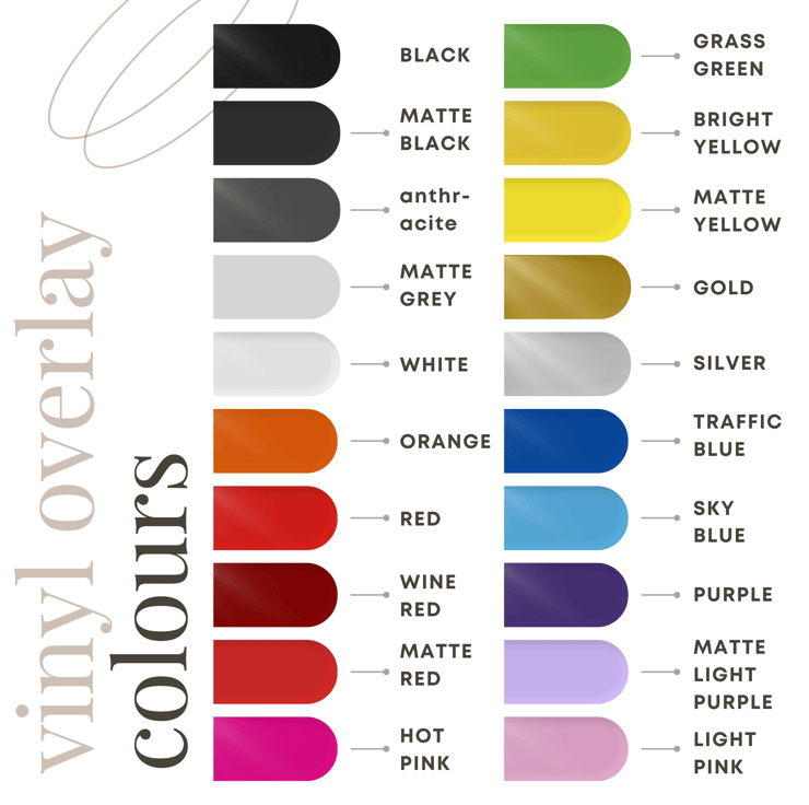 Wide selection of acrylic and vinyl colour options available.
