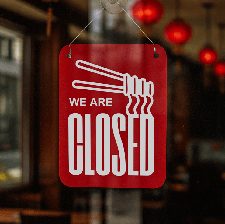 Double-sided sign with “We Are Open” on one side and “We Are Closed” on the other.