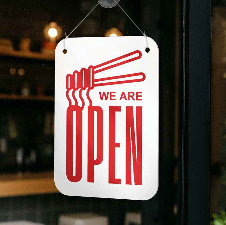 Noodle Open & Closed Sign Chopsticks 2: Asian Takeaway Double-Sided Door Sign