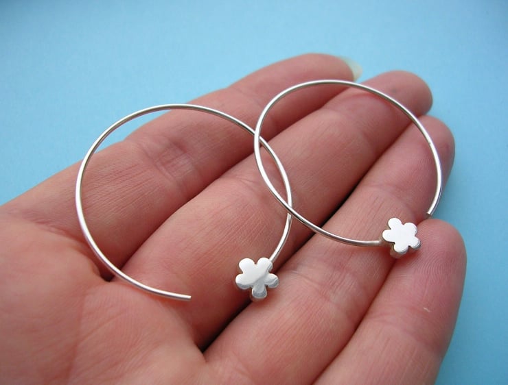 A Small And Simple Silver Flower Decorates The End Of Each Slender Silver Ear Wire.