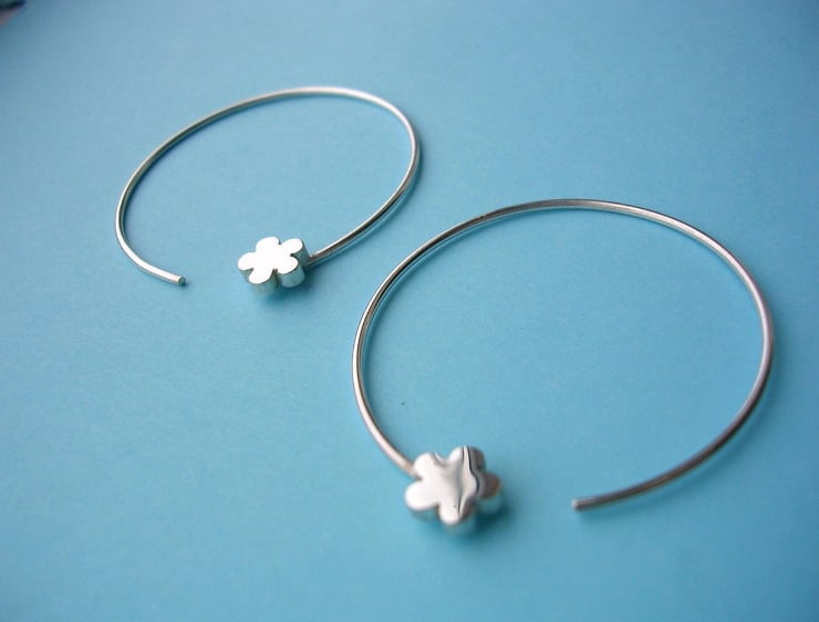 Sterling Silver Flower Hoop Earrings
