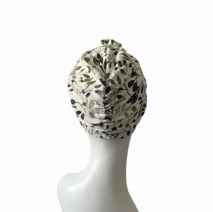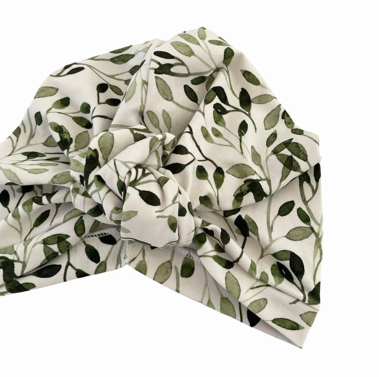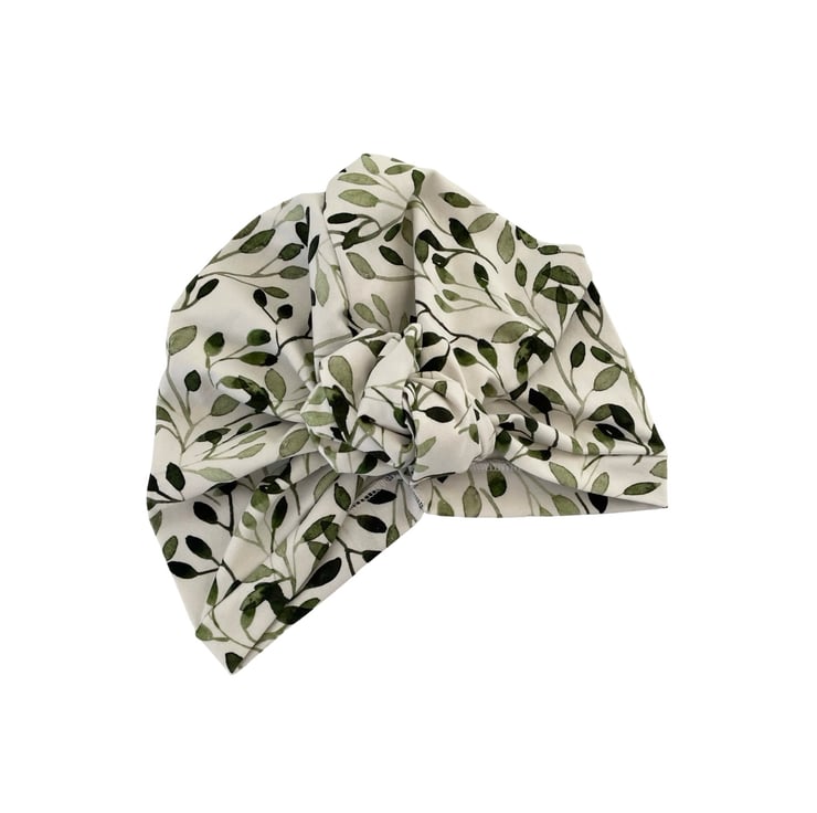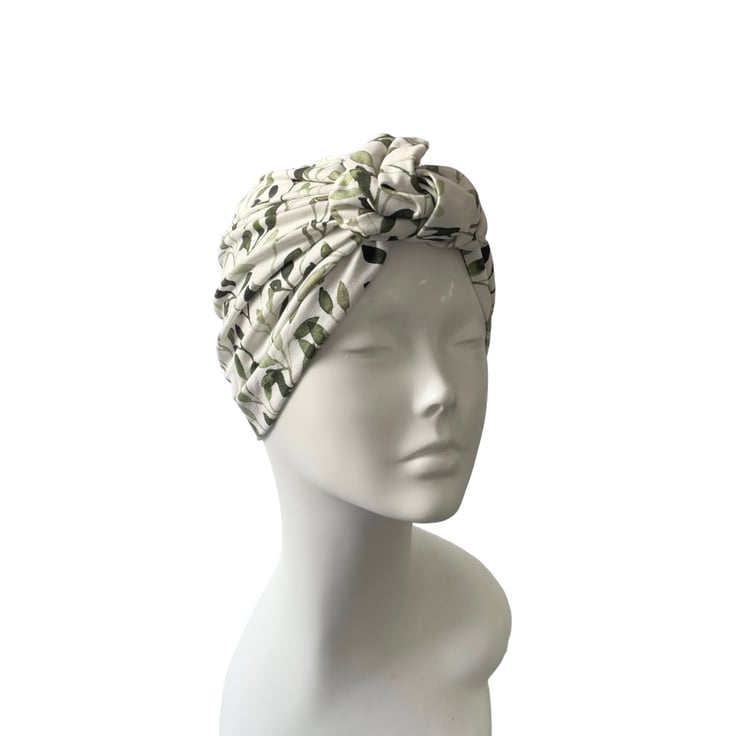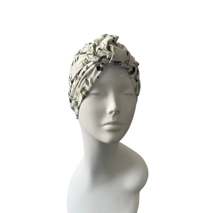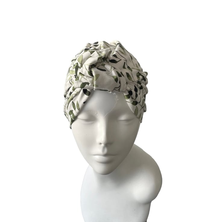 Green Vines Cotton TURBAN for Adults, Women's Head Wrap, Handmade Cancer Hat