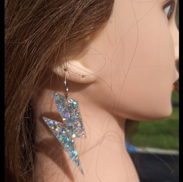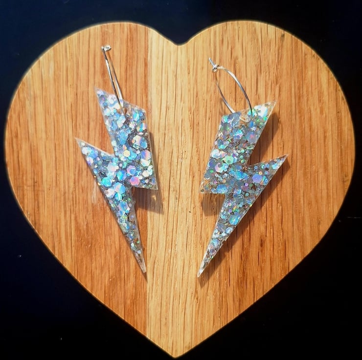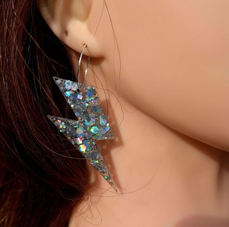 Chunky Glitter filled resin Lightening Bolt earrings.