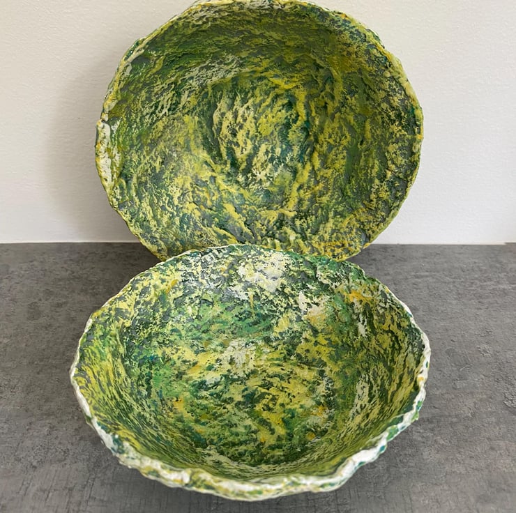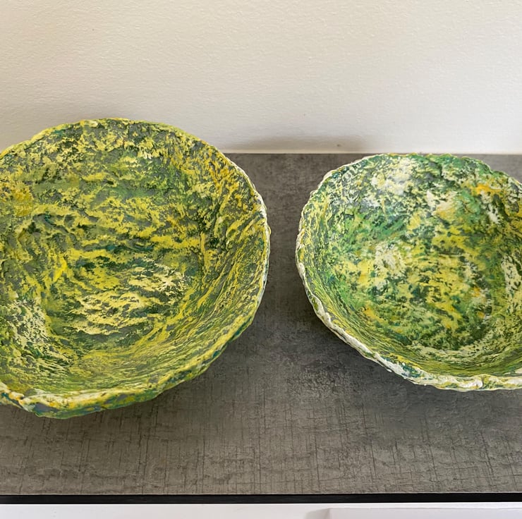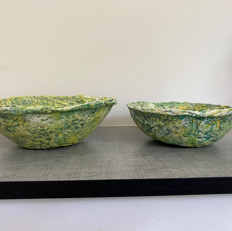 Handmade decorative paper mache bowls made from eco friendly sustainable recycled paper.