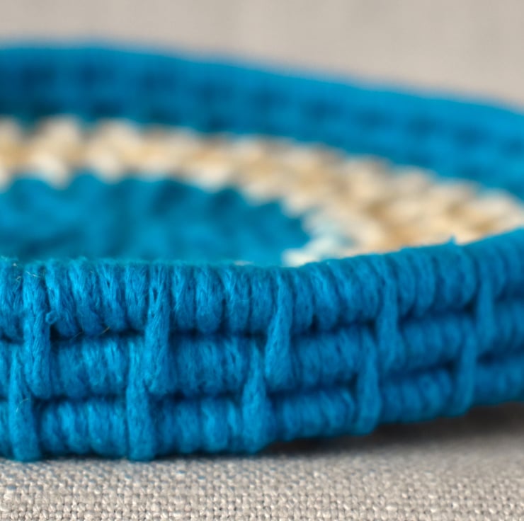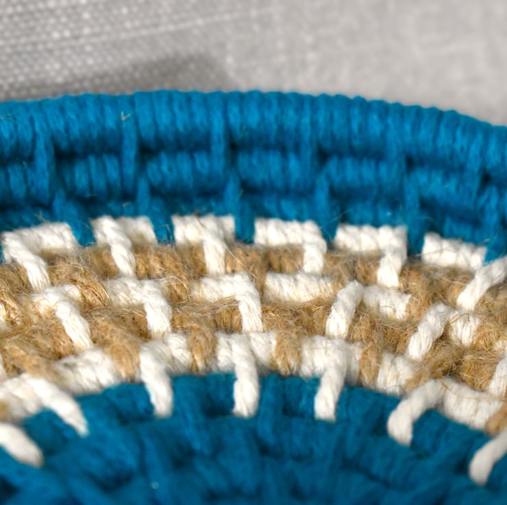 Teal, Jute & Off White Cotton Cord Macrame Basket