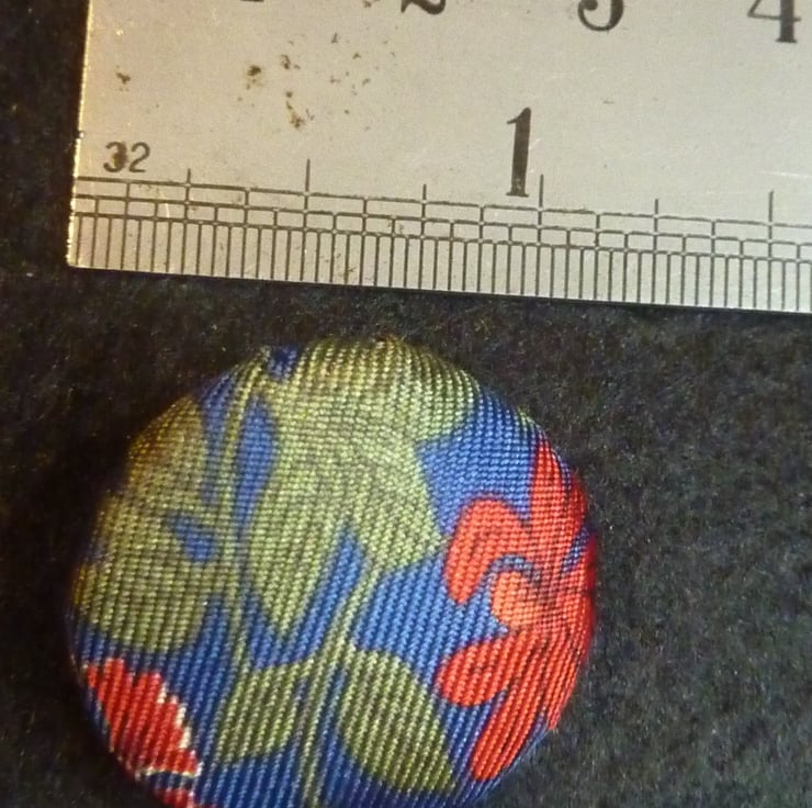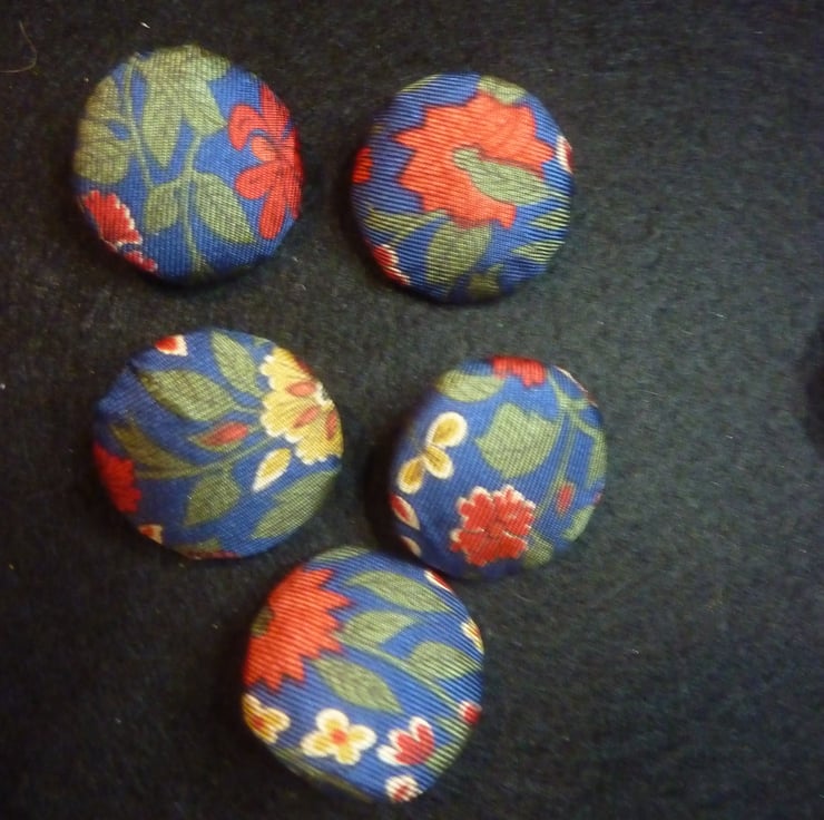 These handmade buttons are by me from designer ties this is printed pure silk with ditsy flower pattern in red, green and blue.
