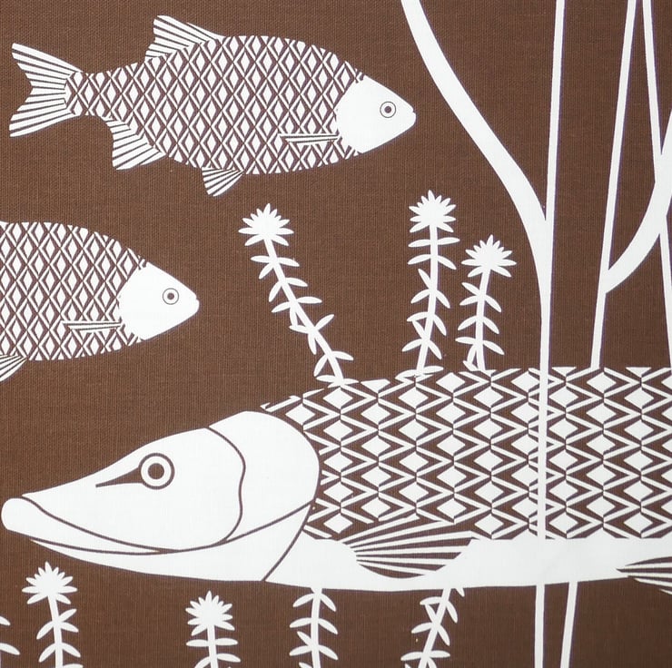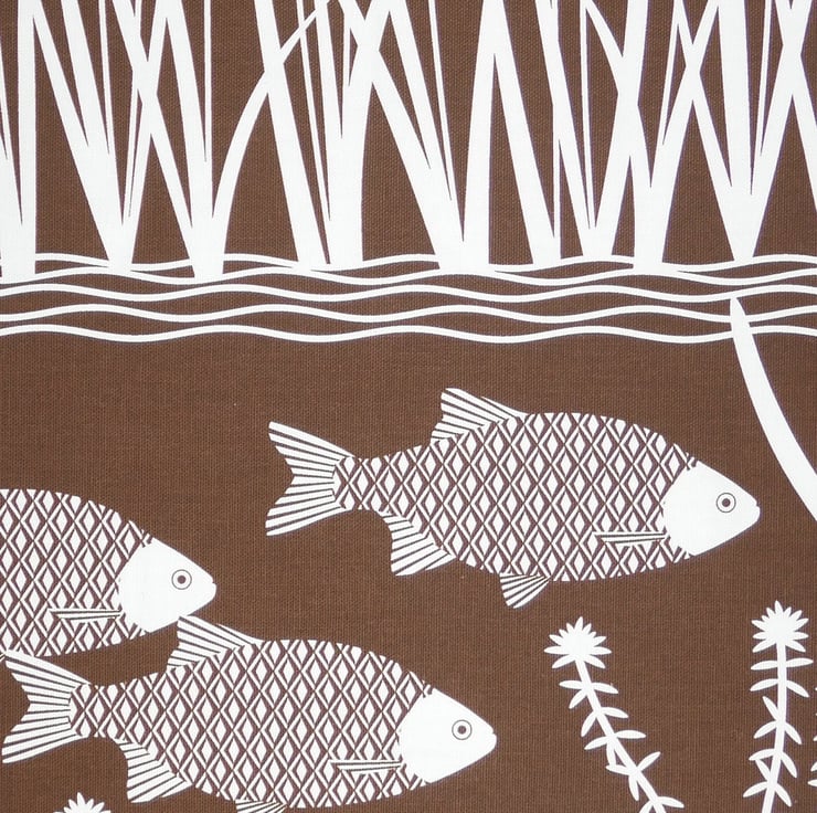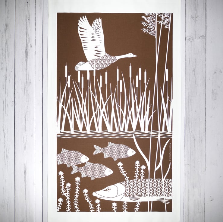 Tea Towel Hickory Brown Screen Printed Lake Goose Fish Design Wall Art Hanger