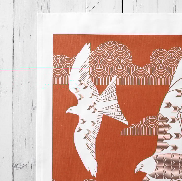 Towels are made from a heavier weight luxury 12 panama cotton tea towel, printed and made in the UK. The colour is a lovely burnt orange.