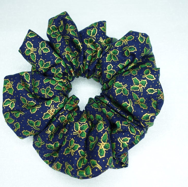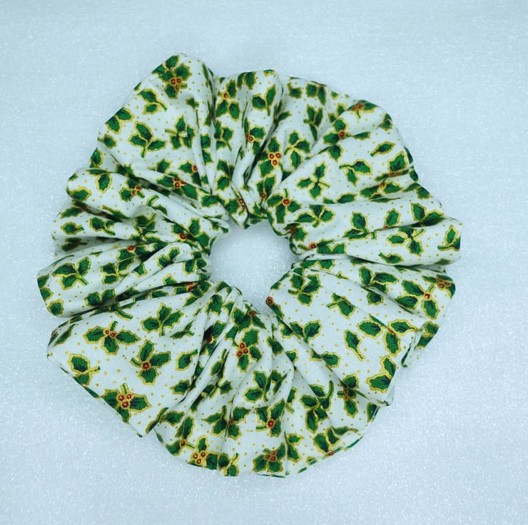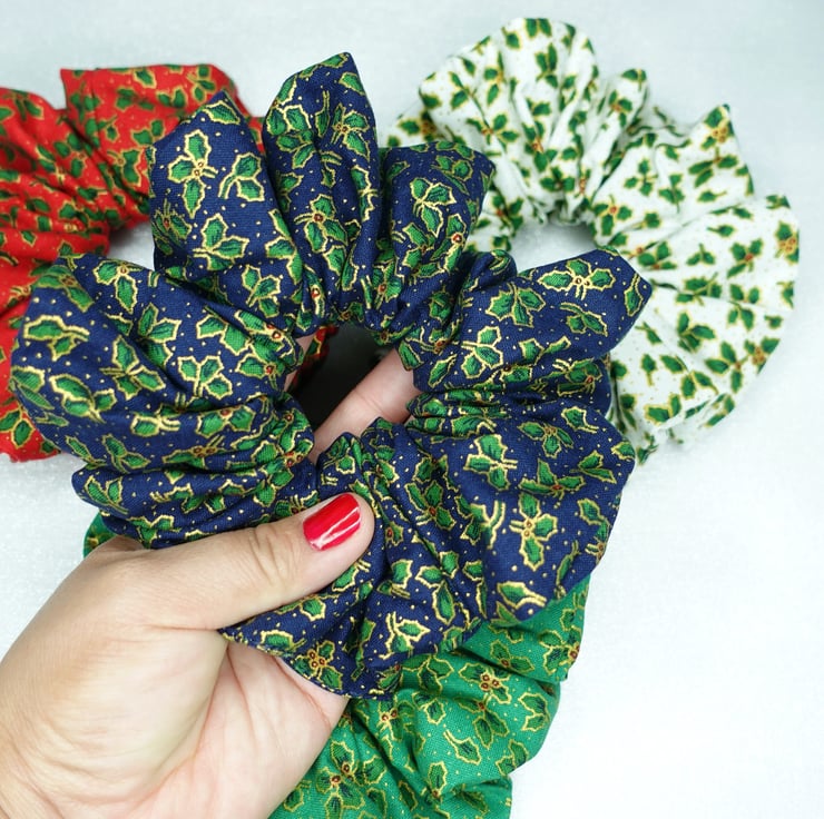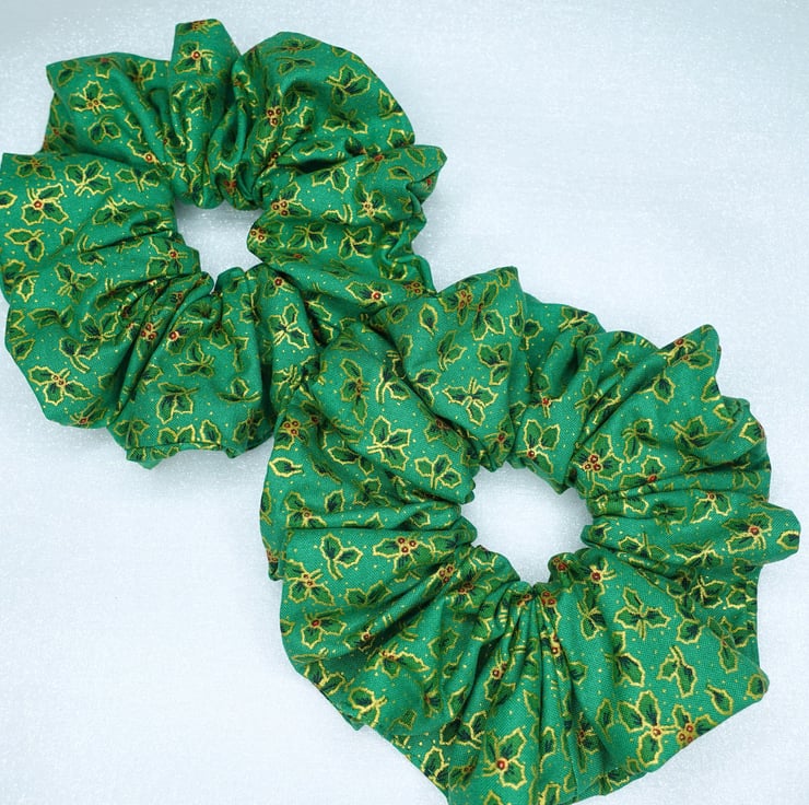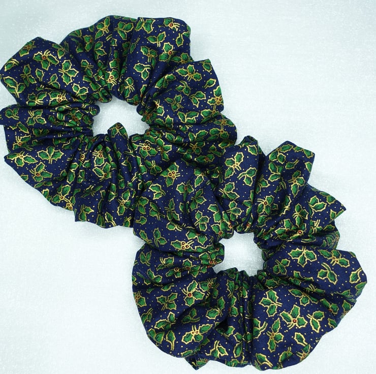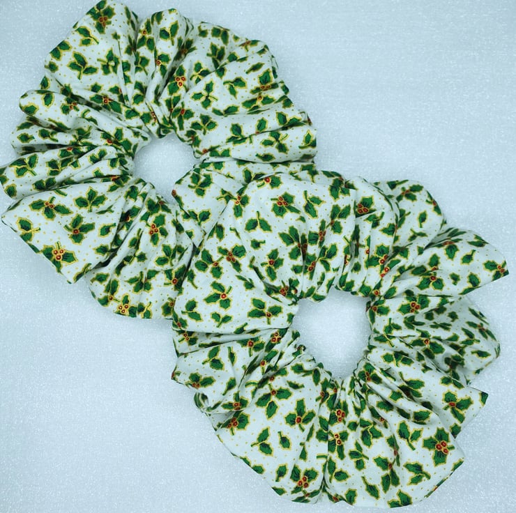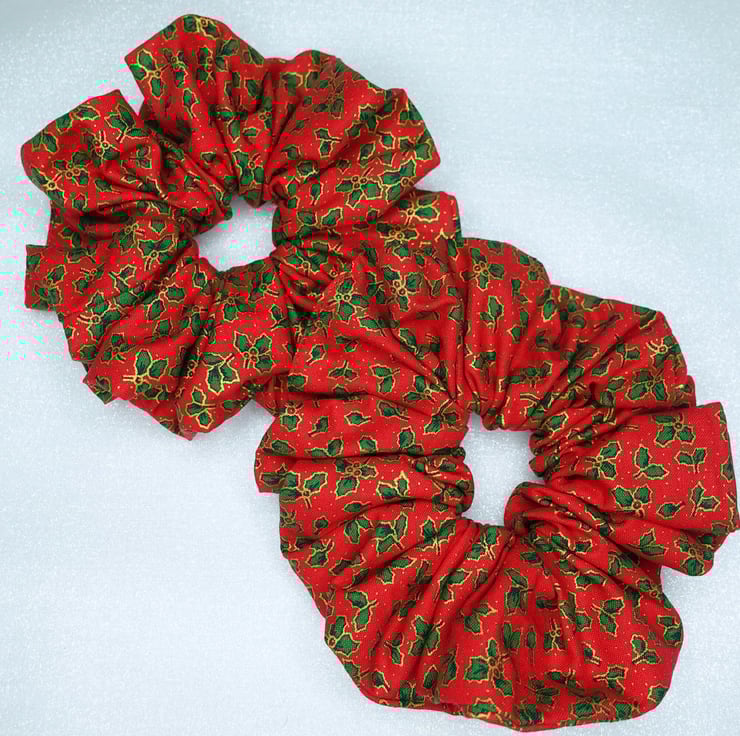 Christmas XL Scrunchies, 100% Cotton, Holly Print Scrunchies, Xmas Scrunchies