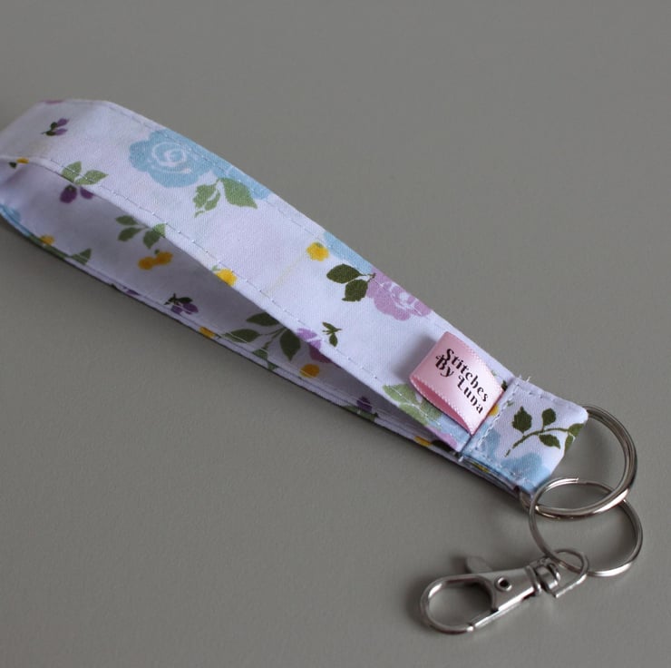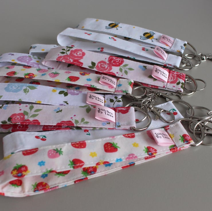Add a splash of color to your everyday essentials with this handmade fabric wristlet keychain, crafted with love in my small sewing studio. Featuring bright, floral prints perfect for summer, this key fob is both stylish and practical ideal for keeping your keys, ID, or small accessories close at hand.