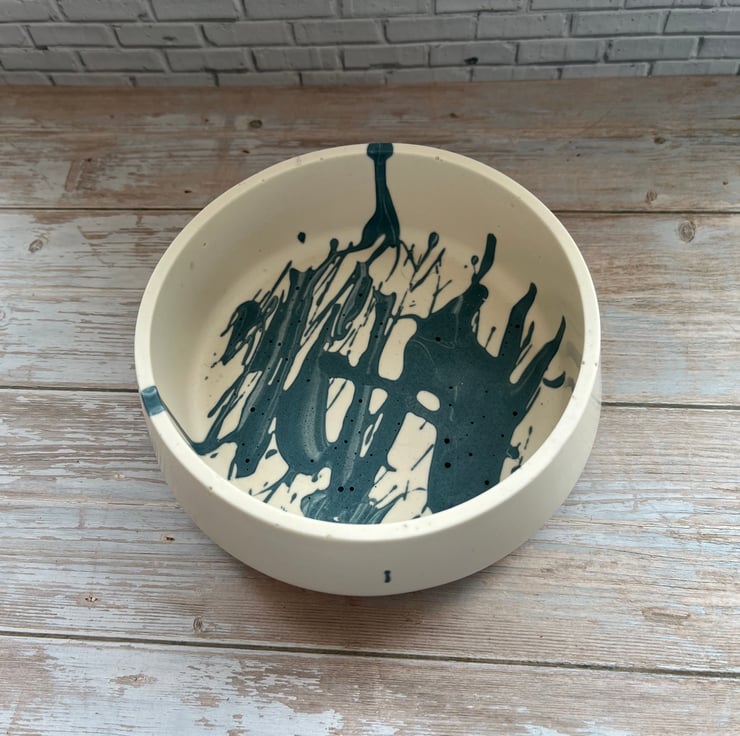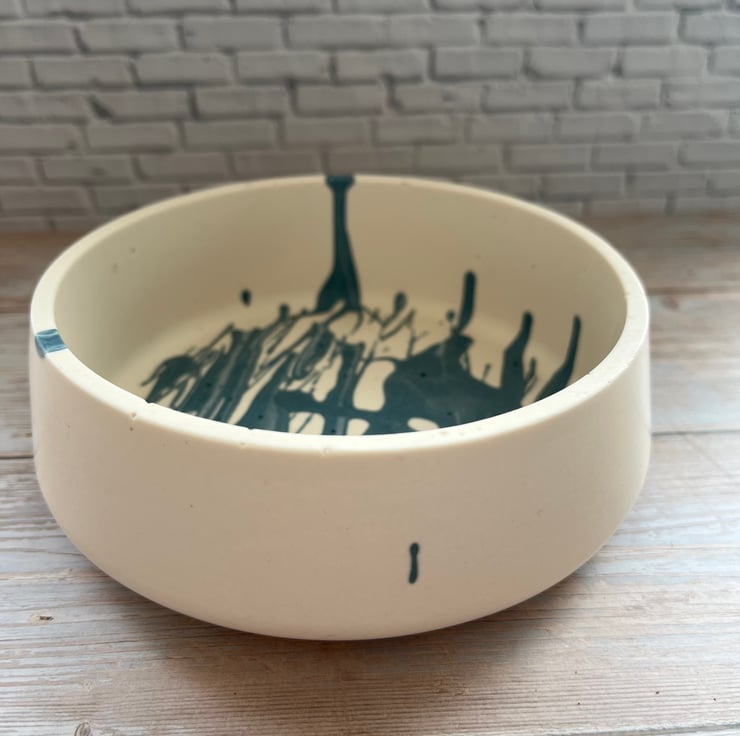 This handcrafted Jesmonite bowl is a study in subtle contrasts. From the outside, its creamy finish exudes calm and simplicity. But inside, a smoke-blue graffiti-style pattern pulses with quiet energy—like a secret kept just beneath the surface. It’s a piece that doesn’t shout, but still speaks volumes.
