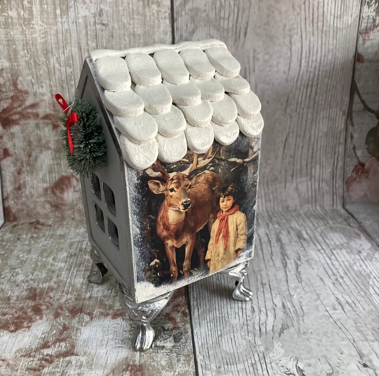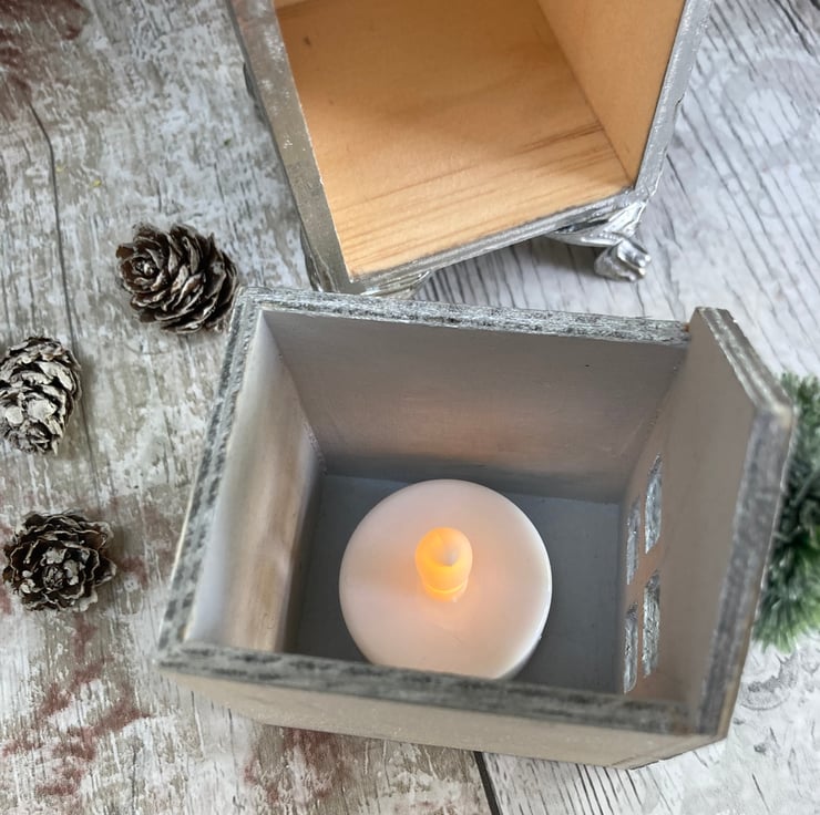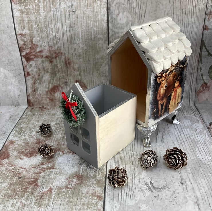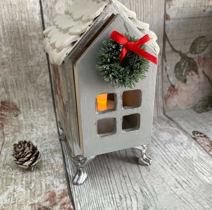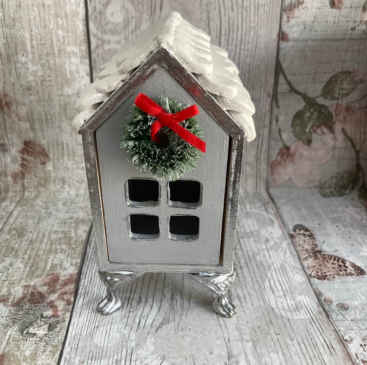 This is a beautiful unique House Shaped Trinket Box / Battery Tealight Holder