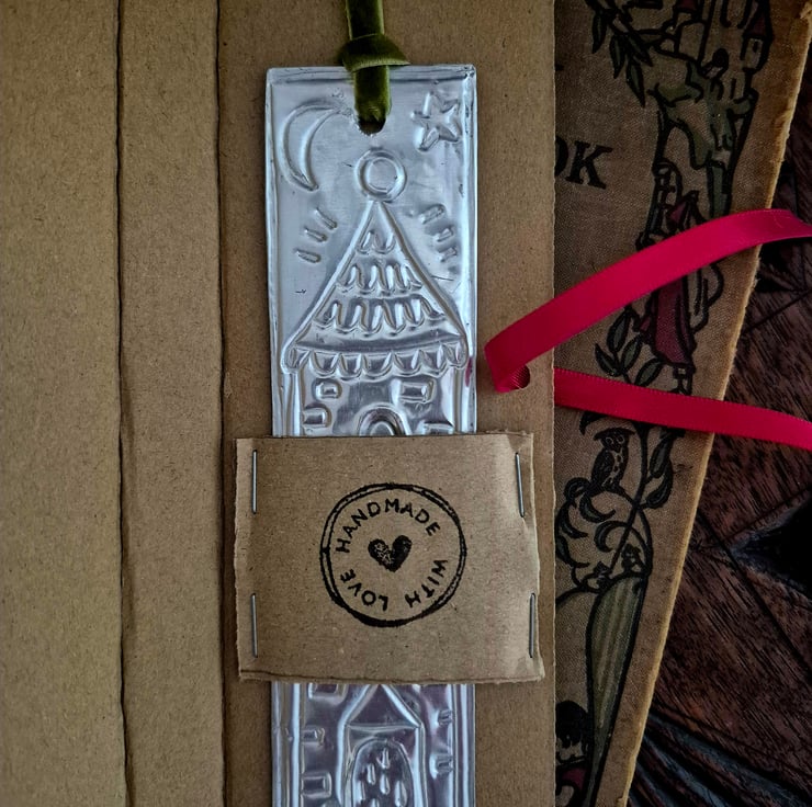 Each bookmark comes in a stiff handmade cardboard presentation package good enough to give as it comes with no need for extra wrapping.