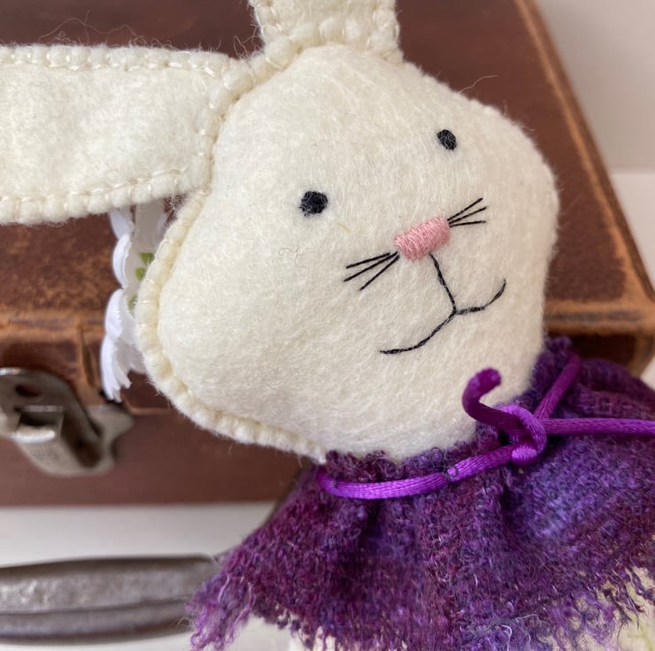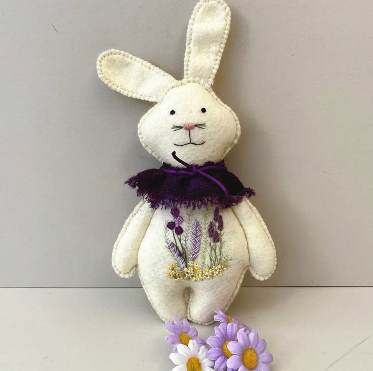 Hand sewn and embroidered woodland bunny, a wool felt wall hanging rabbit