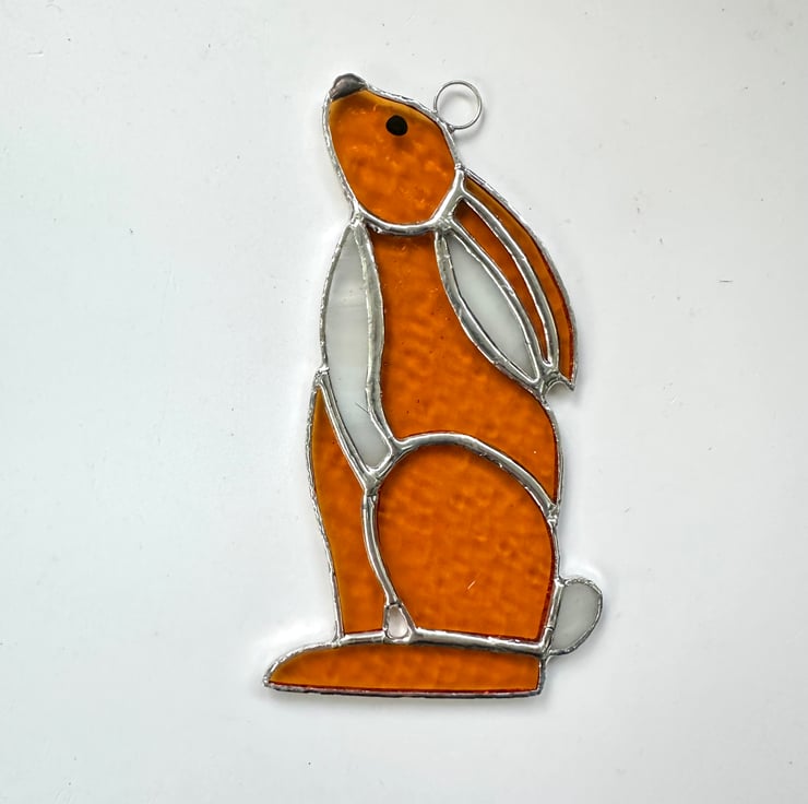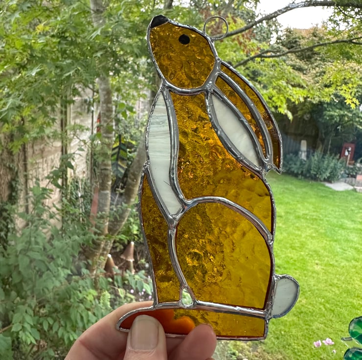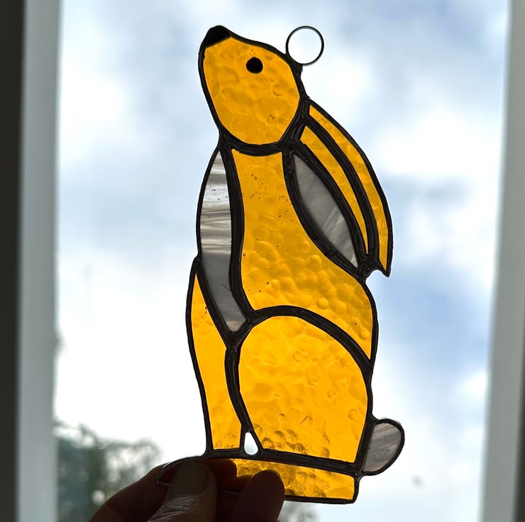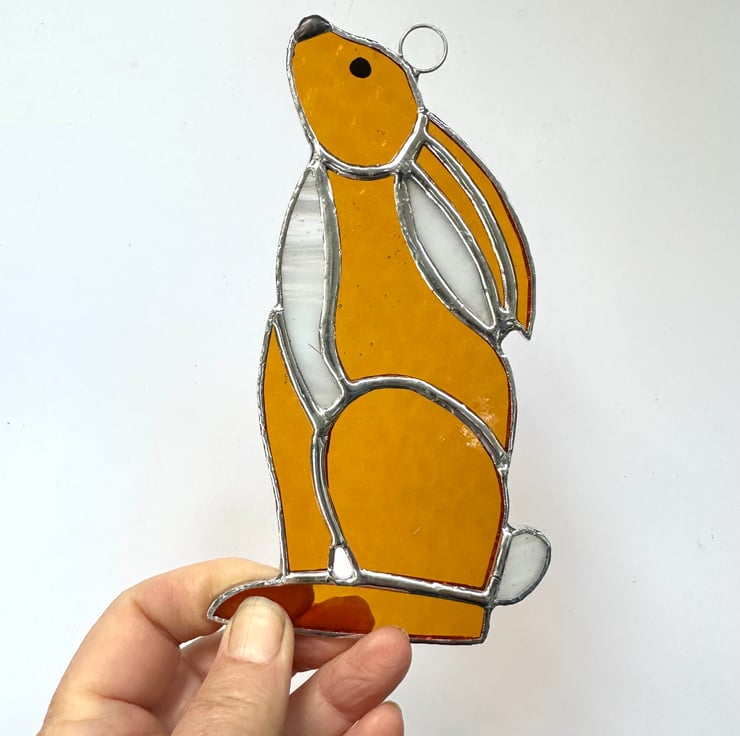 Hare suncatcher made in beautiful stained glass by Carole’s Glass.