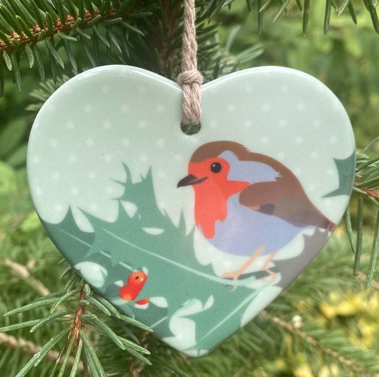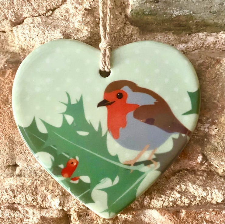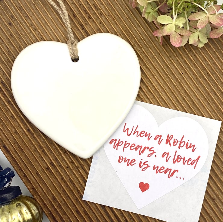 Christmas Keepsake Ceramic Heart - a beautiful hanging Christmas decoration or gift tag to treasure forever. Robins are seen as a comforting symbol of love and good fortune - folklore has it that 'Robins appear when loved ones are near'.