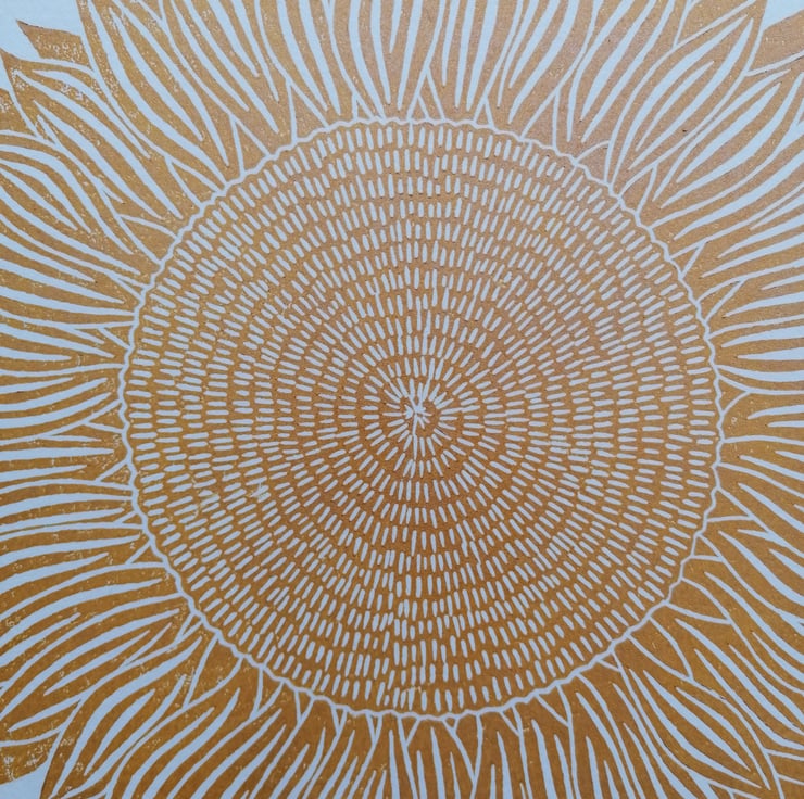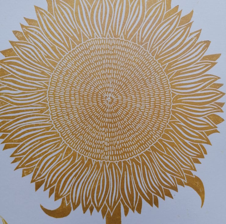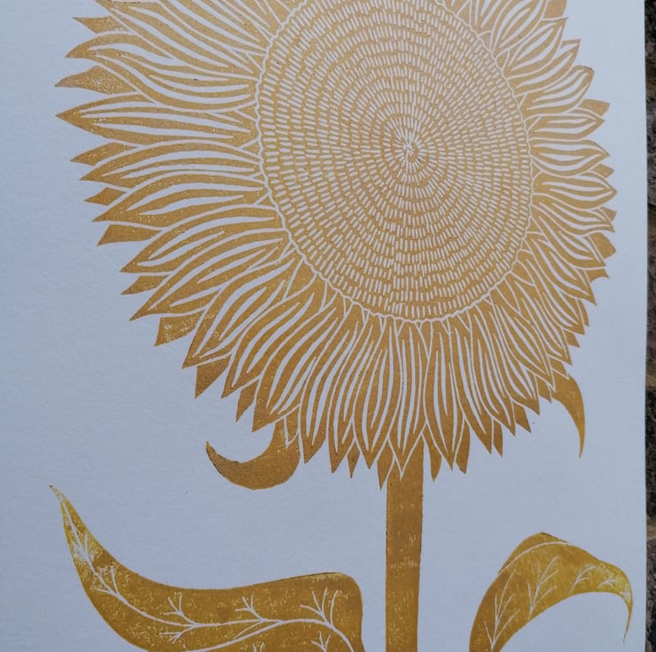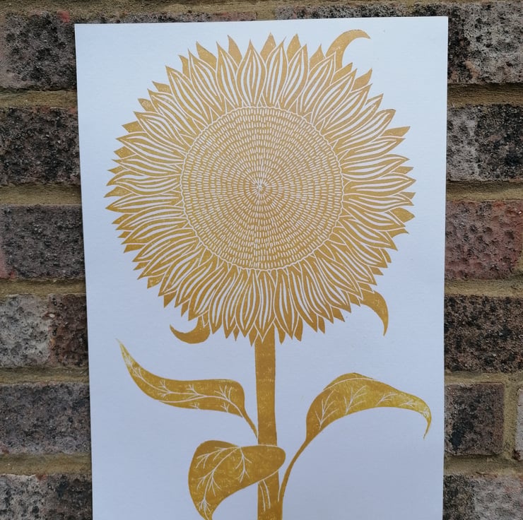 This original Sunflower linoprint is a nostalgic tribute to summer. It's handprinted in gold ink, from my handcarved lino, and A3 in size. It would be a perfect gift for someone special and a lovely way to decorate your home. It's hand-signed and dated on the back.