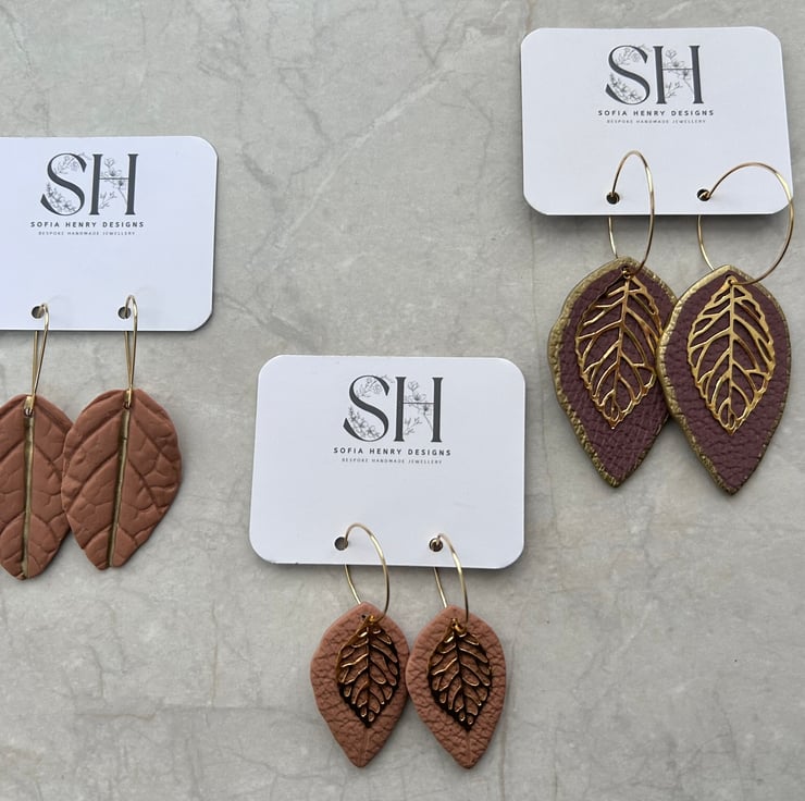 Handmade Polymer Clay Leaf Earrings – Lightweight & Hypoallergenic