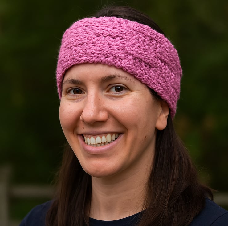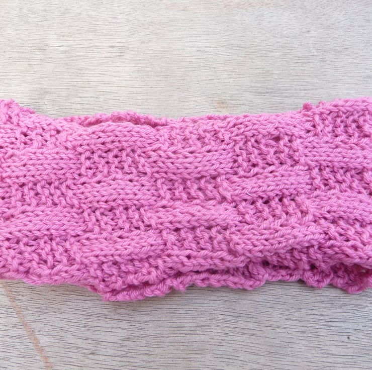 This headband has been handknitted using a lovely deep pink shade of acrylic yarn. One size and stretchy to fit most adult heads.. ideal to keep cosy on chillier days.