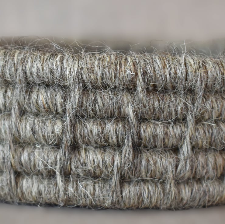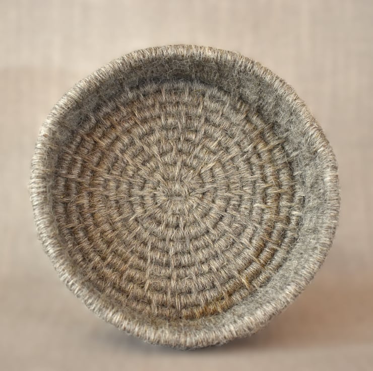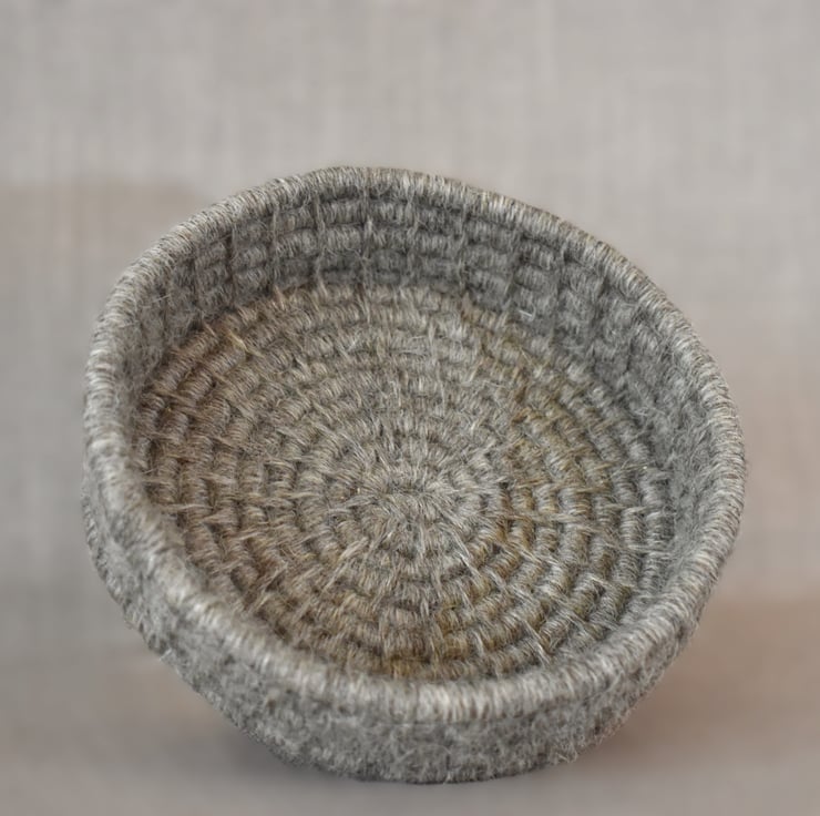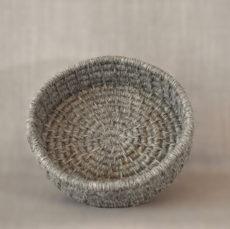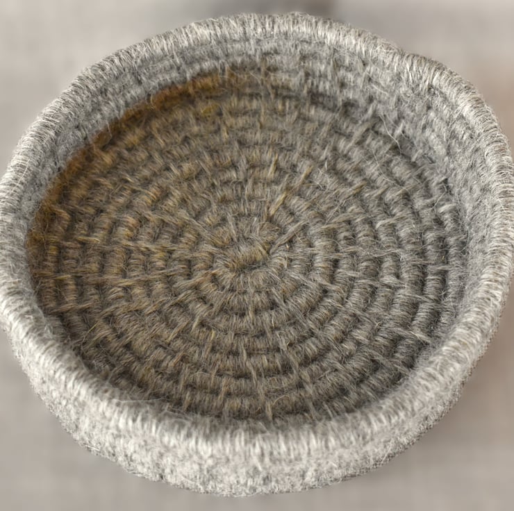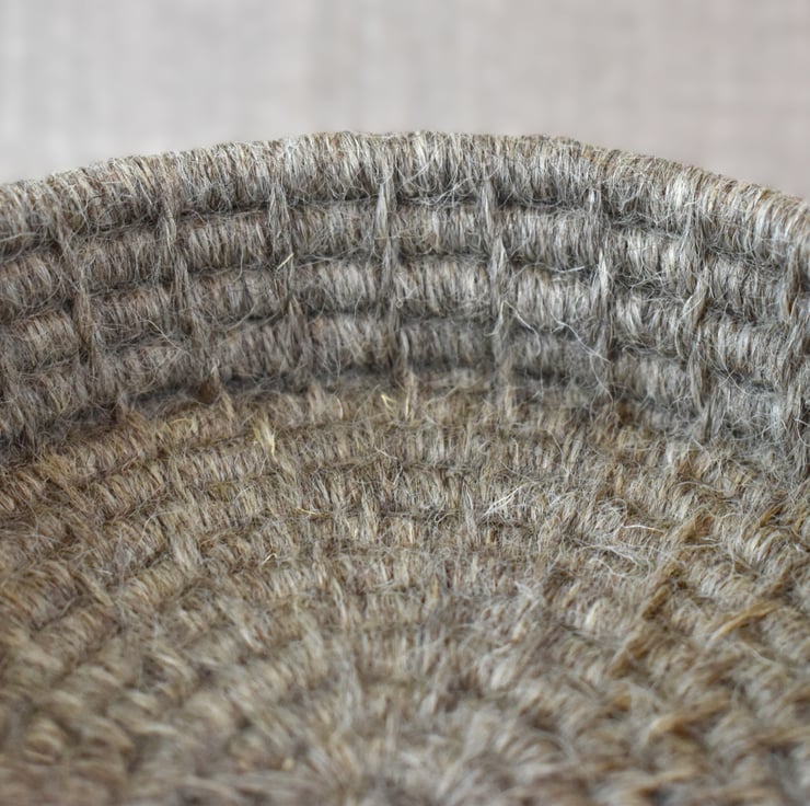 This handcrafted coiled basket in soft grey-beige tones is designed with both style and function in mind. Its neutral colour palette blends seamlessly with any décor, offering a minimalist yet elegant touch.