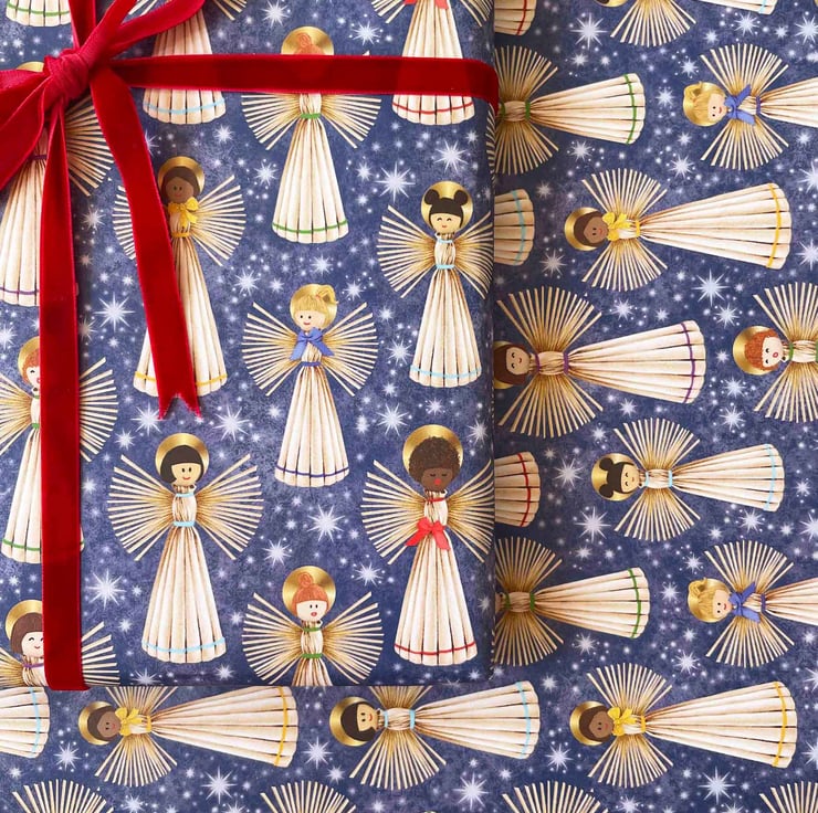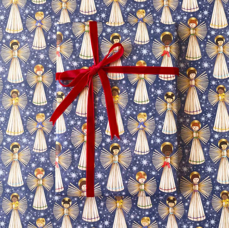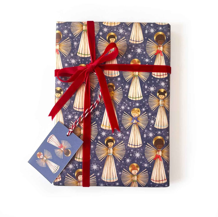 Nordic-Inspired Christmas Angels Gift Wrap & Tag (Matching Card)