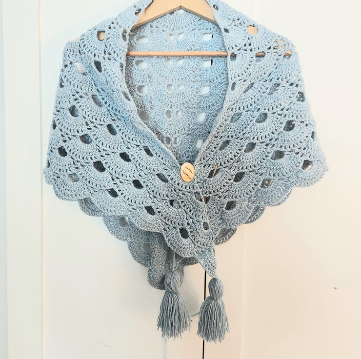 Handmade crochet wool mix (40%) shawl wrap scarf for all ages and styles, it is made with the very trendy virus stitch crochet pattern. Rare find. The brooch is not included.