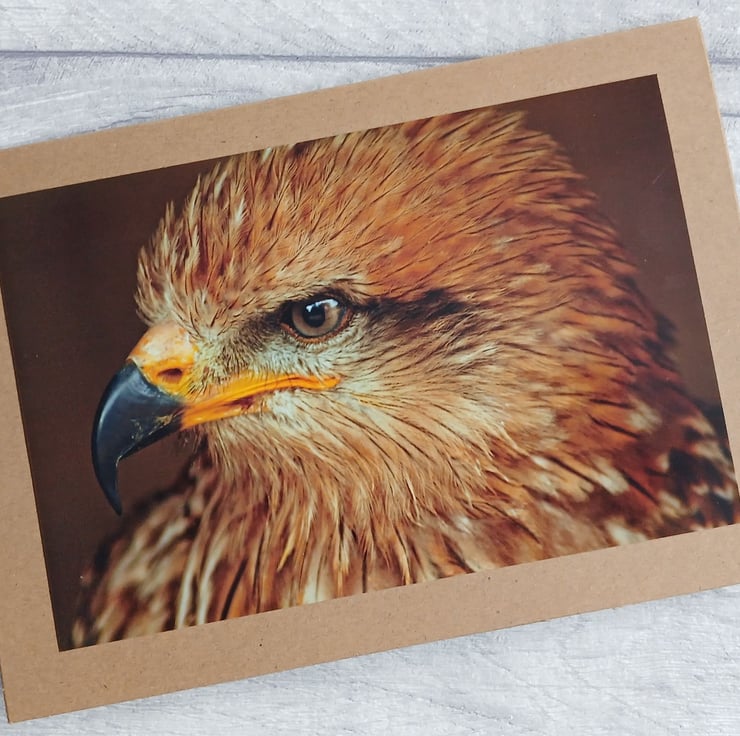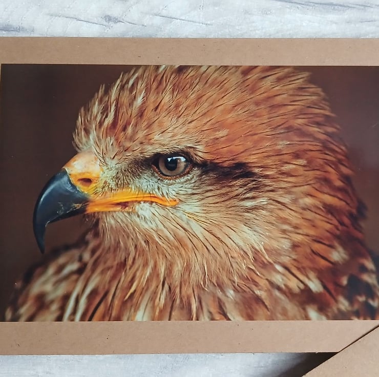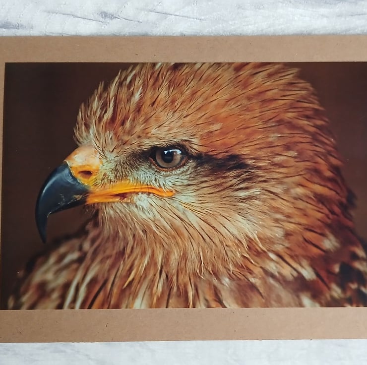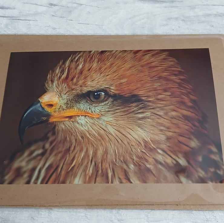 A photo card of a stunningly beautiful Kite - my favourite bird of prey, just the thing for an ornithologist or potential falconer. A 4 x6 inch photo print mounted on a 5 x 7 inch Kraft card and presented in a cellophane sleeve. Blank for your own message.