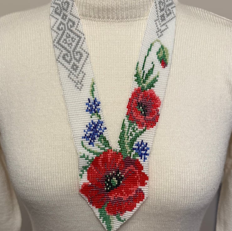 This unique beaded gerdan is inspired by the spirit of victory and the enchanting beauty of Ukrainian nature.