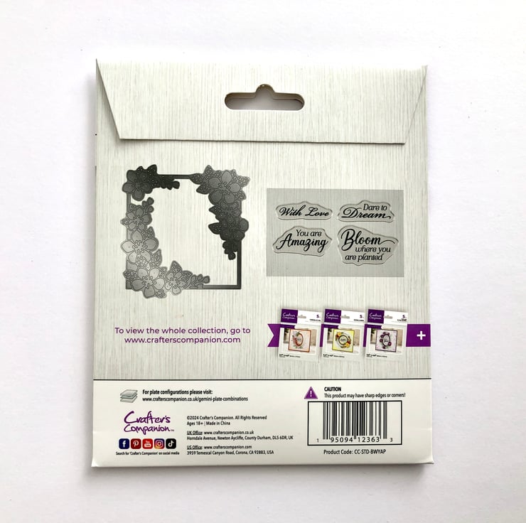 With this Bloom where you are Planted set, you will be able to cut in a beautiful square aperture window edged with a delicate floral frame. There are four accompanying stamps that will enable you to add additional sentiments, for example ‘With Love’, ‘Dare to Dream’ to further enhance your design.