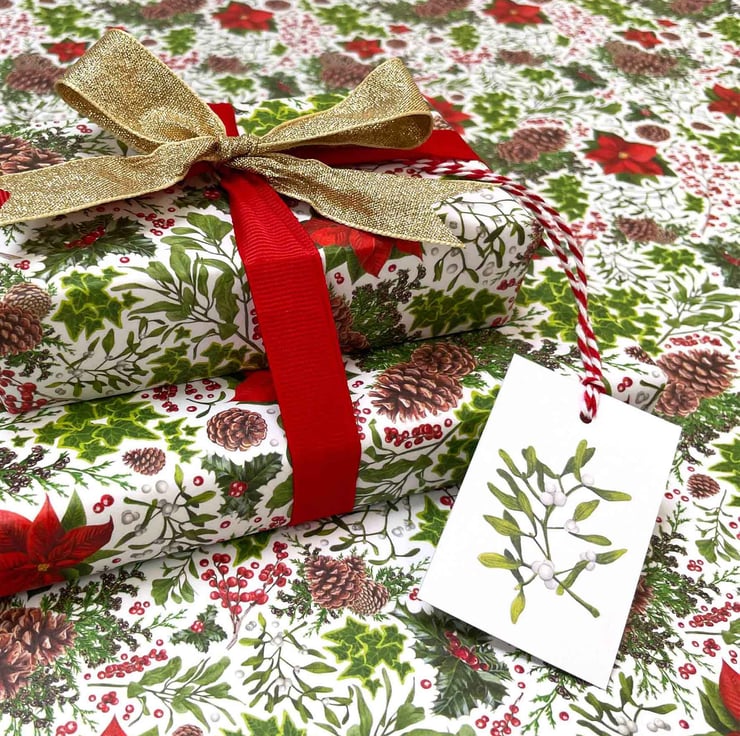 Wrap your gifts with a little extra love this Christmas. This A2 gift wrap features my hand-drawn illustrations of festive foliage – mistletoe, holly, pine and more – for a simple, natural look that still feels really special.