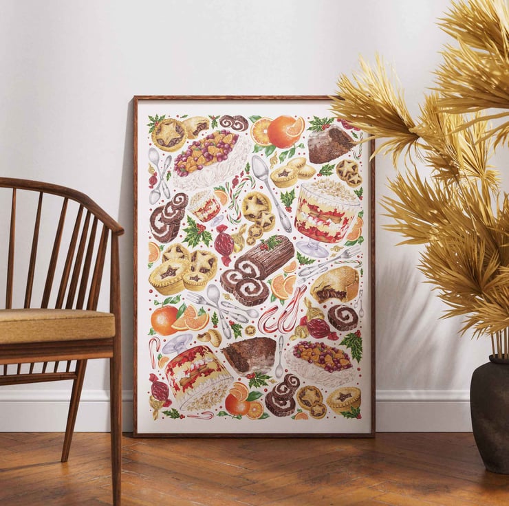 Printed to order in the UK on beautiful, archival-quality paper by a carbon-neutral fine art studio, it’s perfect for brightening up your Christmas kitchen or adding a dash of sweetness to your festive gallery wall. It also makes a lovely gift for bakers, food lovers, or anyone who believes Christmas isn’t complete without a table full of treats!