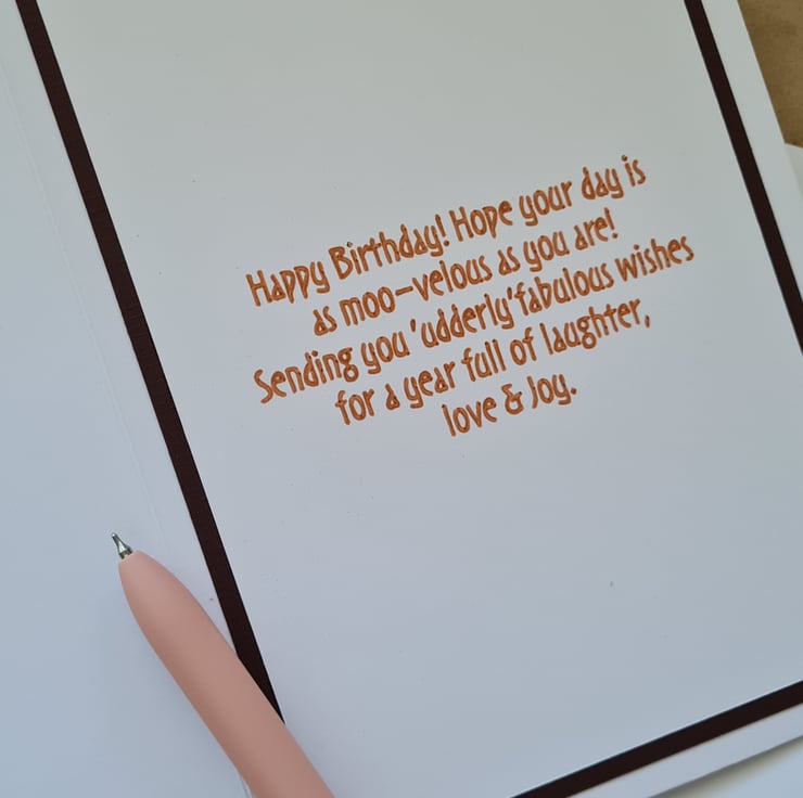Whether sending birthday cheer to a little calf or a seasoned party animal, this card is moo-dest in size but legendary in charm.