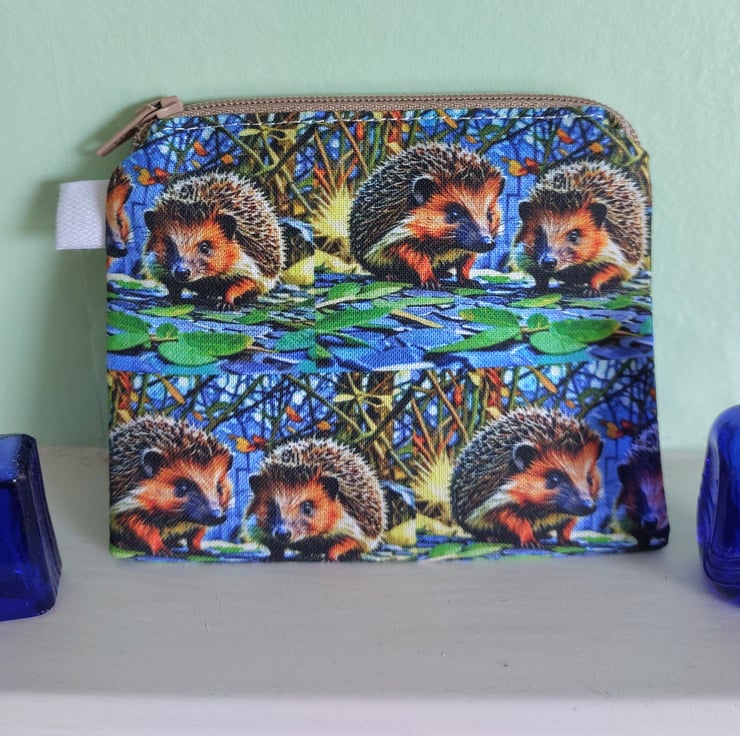 11 cm x 8 cm case lined with zip double sided picture shows typical example each one unique. Unique fabric. Ideal for coins or cards.