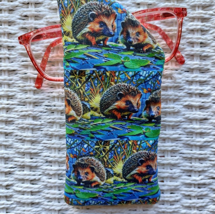17 cm x 7.5 cm lined and padded glasses case unique design suitable for regular size glasses or ready readers double sided. Great gift idea.