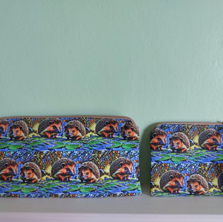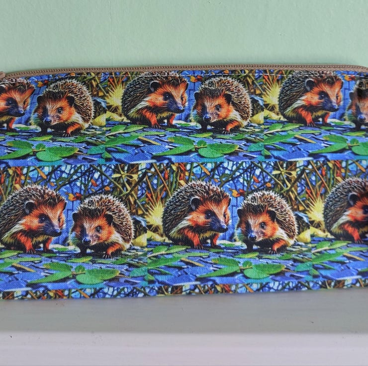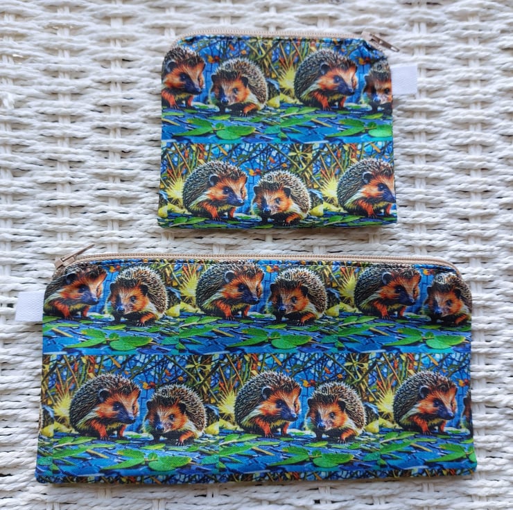 Pencil case 20 cm x 10 cm lined with zip. Each one unique. Double sided picture shows typical example. Purse ideal for coins or cards 11 cm x 8 cm lined with zip double sided.