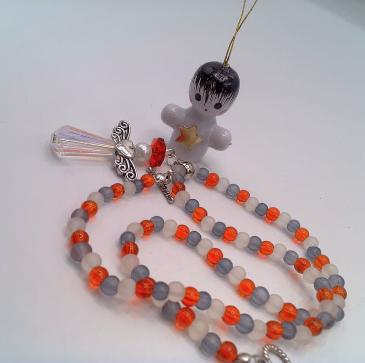 Beaded Christmas Angel Pendant on a Red Black & White Beaded Necklace, Christmas, Christmas Gift, Birthday Gift, Secret Santa Gift, Gift for Her, Stocking Filler