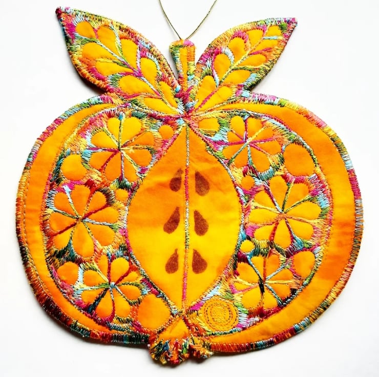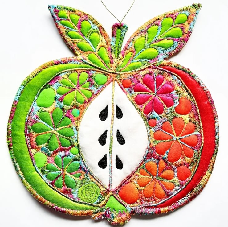 This is a handmade apple hanging decoration.