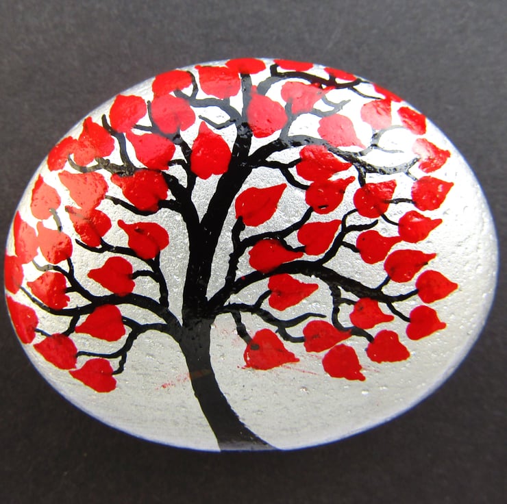 Painted Pebble, Tree of Hearts, Stone Art Painting, Unique Love Gift, Small Rock