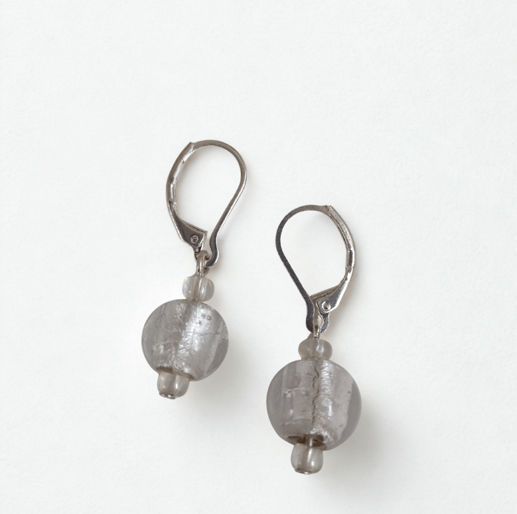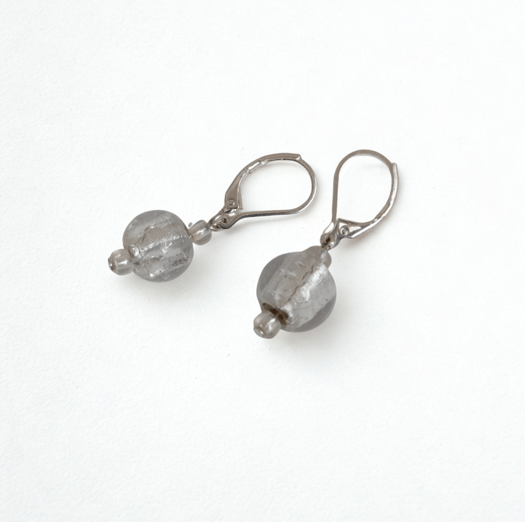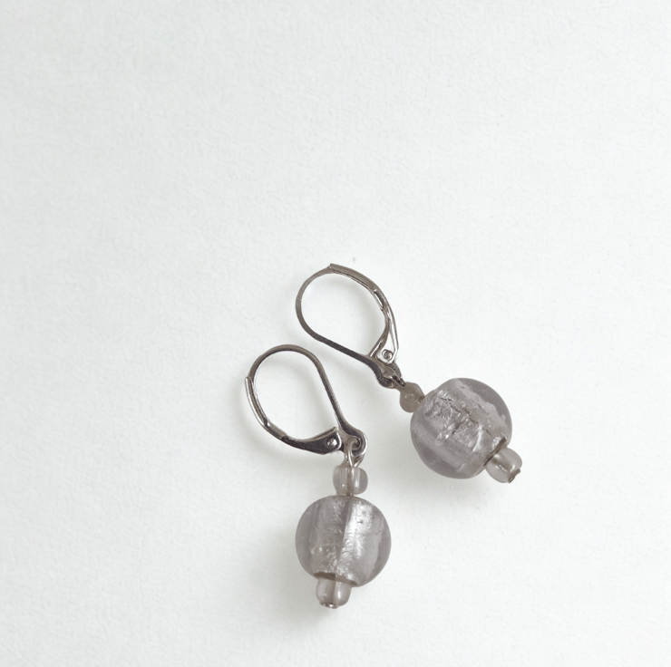 The loveliest beads in a shimmering clear/white frosty glass with tiny clear glass beads.. wonderful for a special occasion, for a bide, elegant, simple and pretty. I 925 sterling silver lever back hooks.