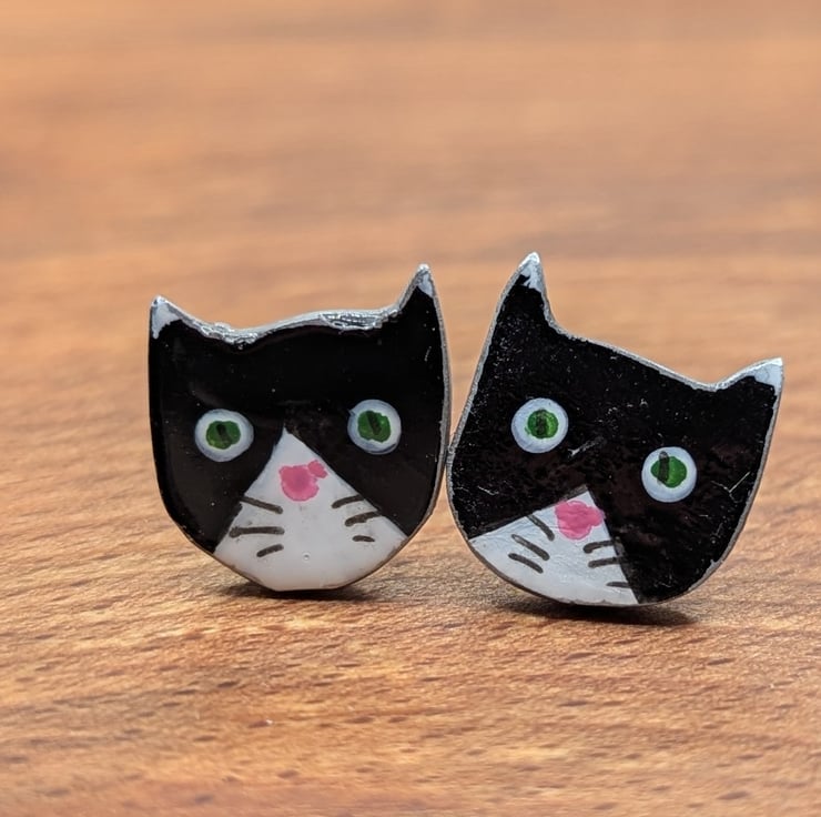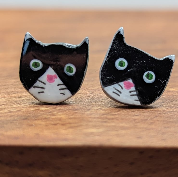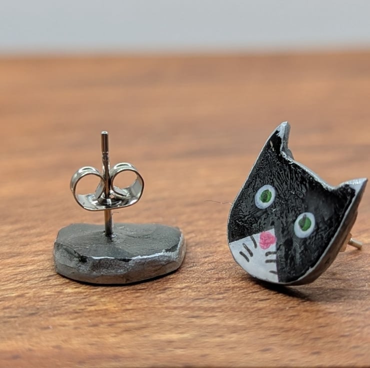 These delightful little stud earrings are made with polymer clay, with features added using acrylic paint, the stainless steel posts are embedded using left over polymer clay.