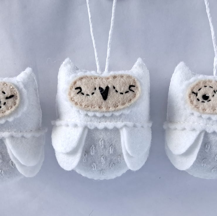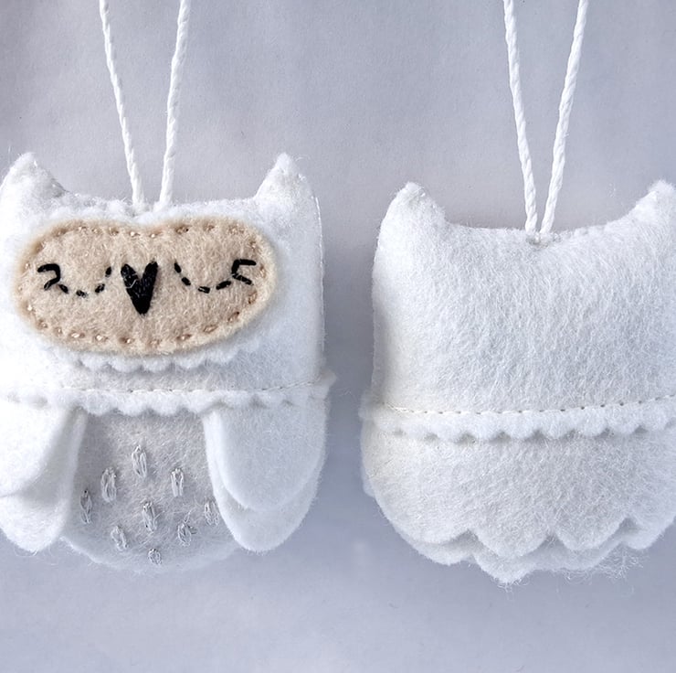 These little Owls are handmade from 100% wool felt white from the Wool felt Company, a UK based supplier.