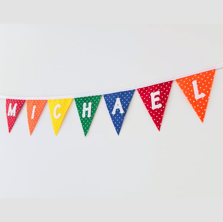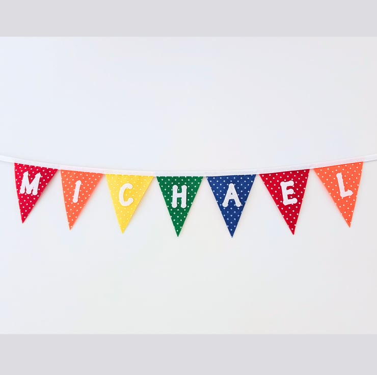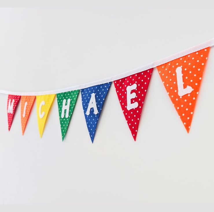 This custom rainbow bunting will brighten up any space with its vibrant rainbow colours! Perfect for playrooms, book nooks, shelves, mantel pieces, wall décor, celebrations or anything you can think of that could do with a sprinkling of bright, cheerful colour. They also make great gifts for a baby shower, birthday or as a housewarming gift or new baby gift.